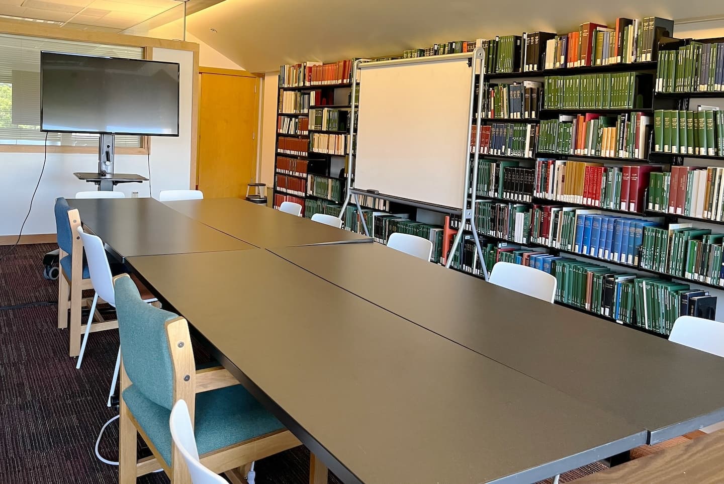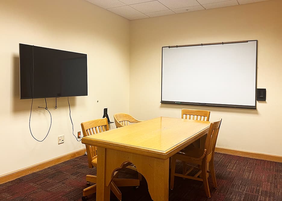 Photo | Richard B. Hooper '37 Group study room Room-205b 2-4 people | Library Cecil H. Green Library | Open/Closed | Features Features: Conversation space, Large monitor (30 x 55 in.), Whiteboard Reserve space at Cecil H. Green Library |